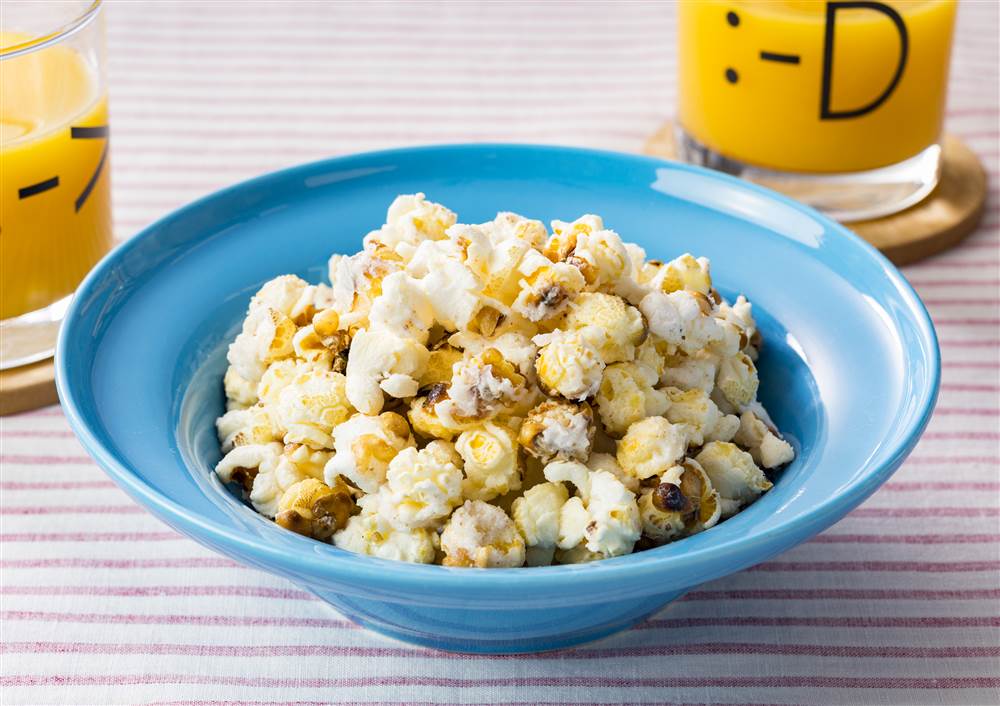 1大きめのフライパンに油をひいて熱し、ポップコーンを入れて油がまわるようヘラで炒める。