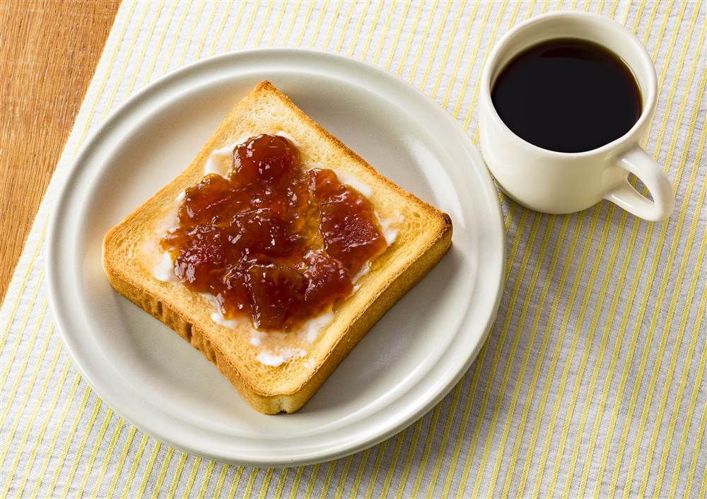 トーストした食パンにバターとジャムをぬるだけで、タルトタタンのような味をたのしめます。