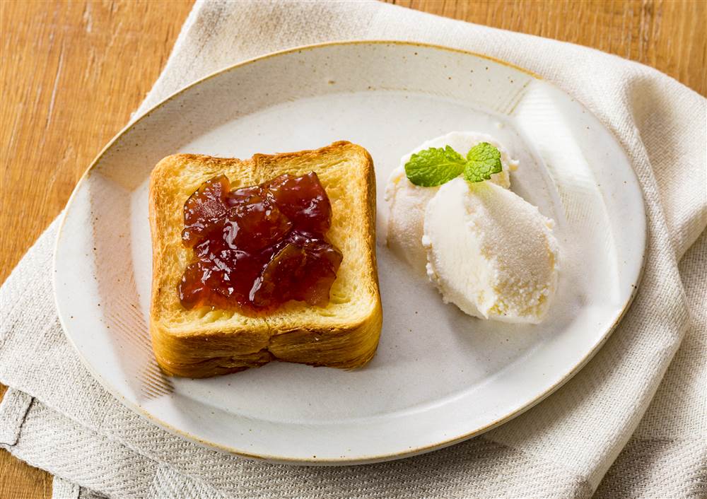 トーストしたデニッシュ食パンにジャムをのせるだけで、タルトタタンのような味をおうちでかんたんにたのしめます。