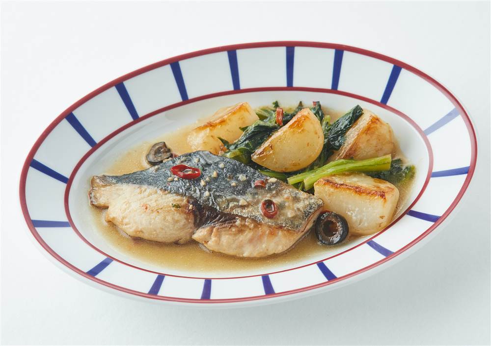 ガーリックソースのスパイシーな風味が、淡泊なさわらによく合い、かぶの甘さを引き立てます。