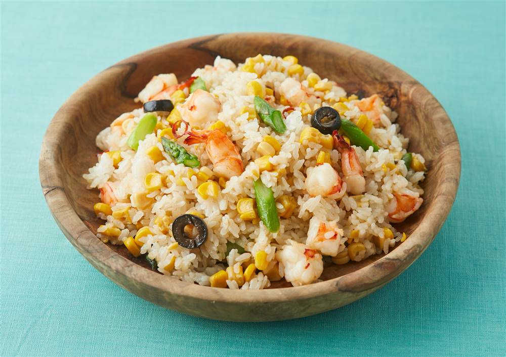 ガーリックソースで作る、彩りがきれいなチャーハンです。
