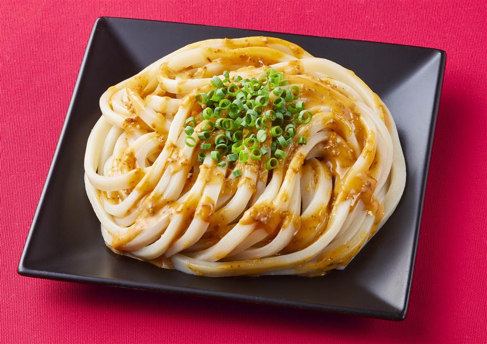 うどんに、ラー油の辛味とにんにくのうま味でコク深く仕上げた深煎りごまドレッシングがよく合います。