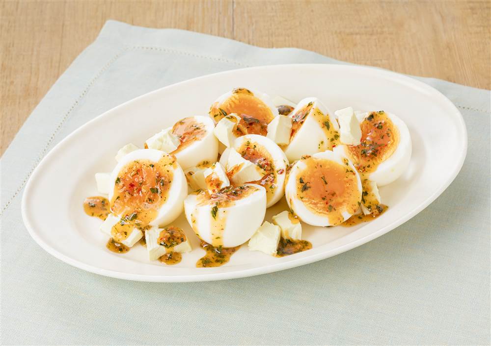 1ゆで卵は半分に切る。クリームチーズは食べやすい大きさにちぎる。