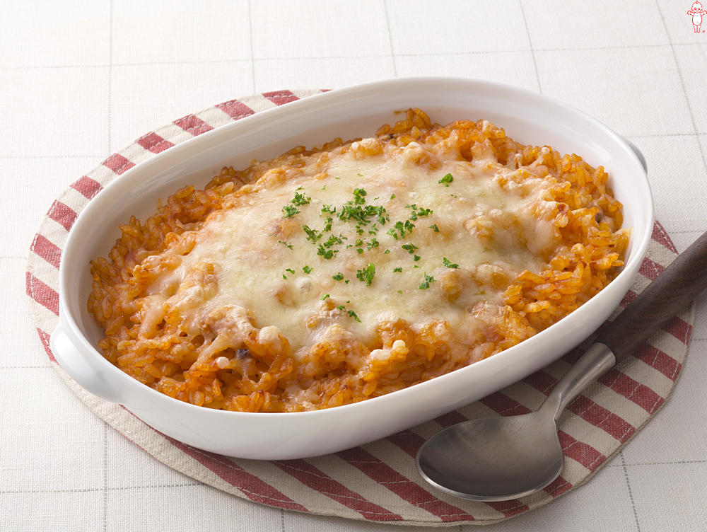 ミートソースをごはんにまぜて焼くだけのかんたんな一品です。フォン・ド・ヴォーのコクが感じられます。