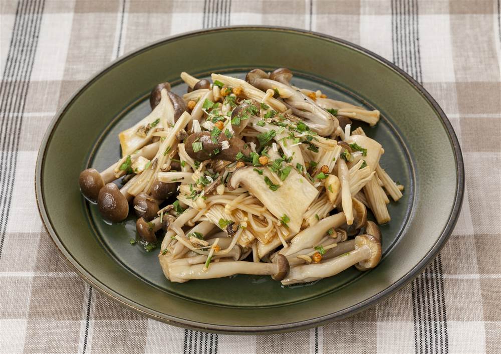 レンジ加熱したきのこをパスタソースで和えるだけ。バター醤油の風味がきいた、かんたんにできる一品です。