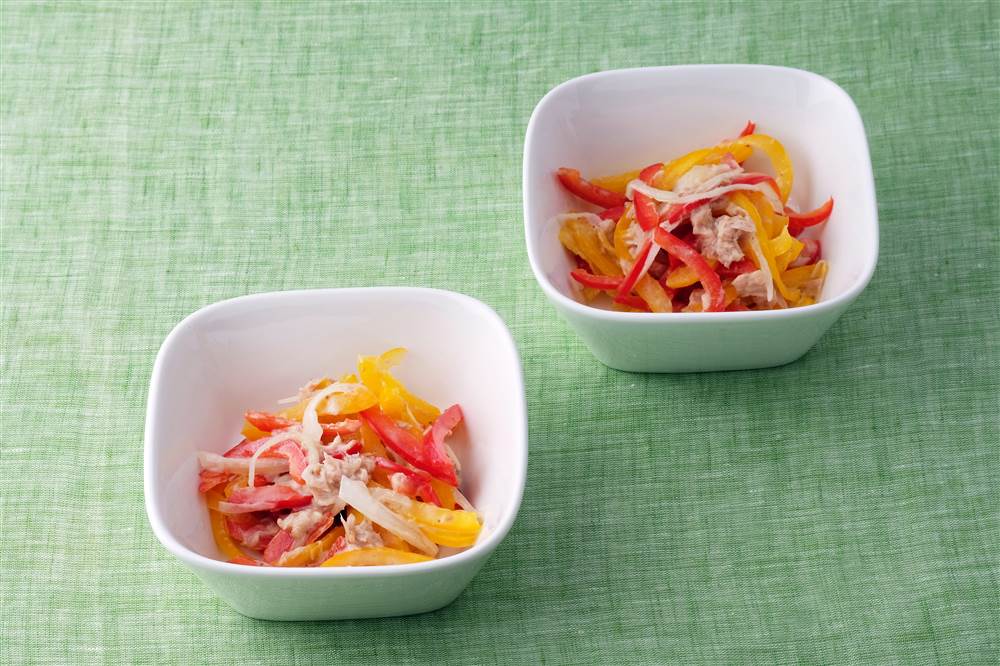 2ボウルに①と汁気をきったツナを入れ、ドレッシングで和える。