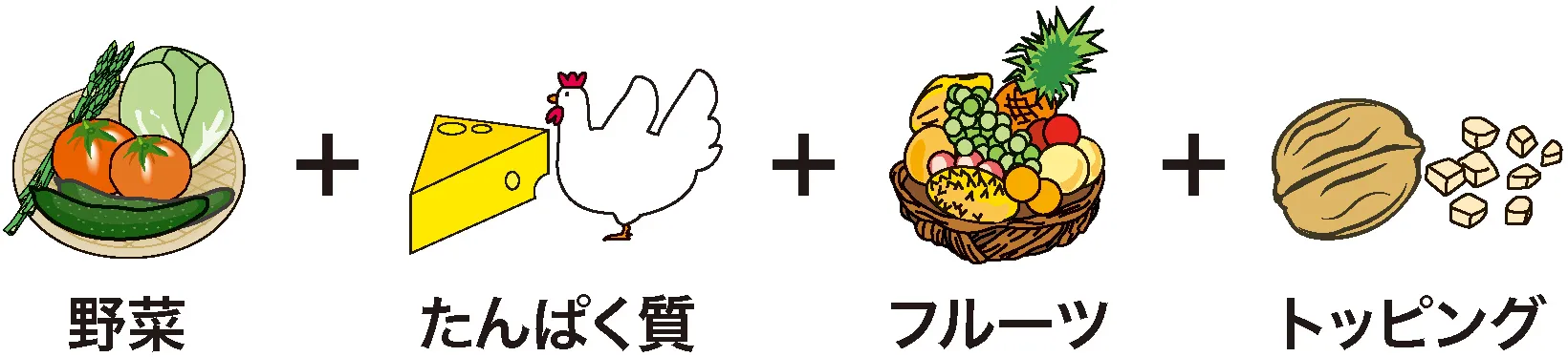 サラダは通常、副菜として提供されることが多いですが、このところ、肉や魚、卵などを野菜と一緒に“主食感覚”で食べるサラダが注目を集め始めました。これは“パワーサラダ”と呼ばれるもので、野菜、たんぱく質食材、フルーツ、そしてトッピングを組み合わせてつくる栄養満点のサラダです。一皿で食物繊維の他、ビタミン、ミネラル、たんぱく質など、さまざまな栄養素を効率よく摂取することをサポートすることから、アメリカ西海岸やニューヨークで人気になっています。