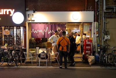 中華小皿とナチュラルワインの組み合わせで、20~40代の男女を集客する繁盛立ち飲み酒場。定番の中華料理にひねりを加えたハイセンスなフードを目あてに遠方からのお客も多く、平日も店内は15時の開店直後から賑わう。
