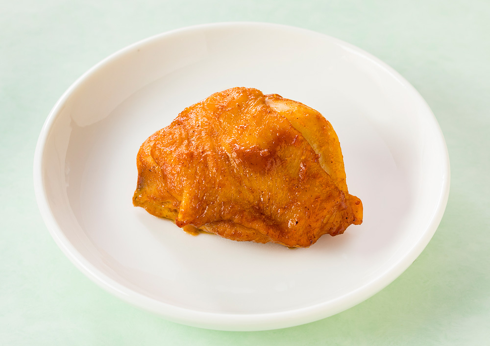 タンドリーチキンはヨーグルトを使う料理ですが、代わりにキユーピー エッグケアを使うことで乳アレルギーの子でも同じものが食べられるように仕上げました。人気メニューで、残食ゼロメニューのひとつです。