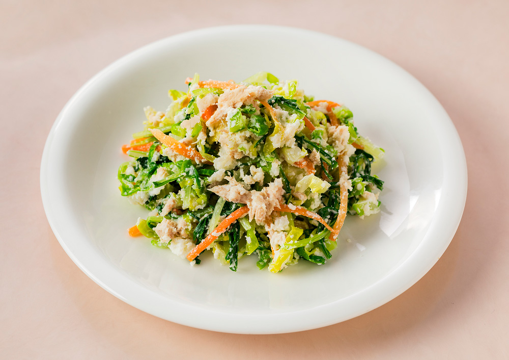 子どもも大人もマヨネーズで食べやすいためか、人気メニューの一つです。食物繊維はもちろん、カルシウムや鉄をサラダで摂ることができます。
