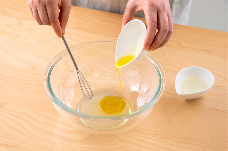 最後にオリーブ油とサラダ油を混ぜることで分離しにくく、味がしっかりとなじみます。