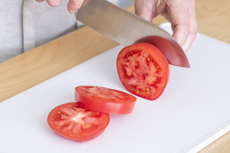 2トマトを輪切りにする