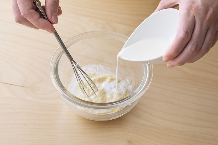マヨネーズのように粘度の高いものを先に混ぜておき、水分の多いものを最後に少しずつ混ぜることで分離しにくく、味がしっかりとなじみます。