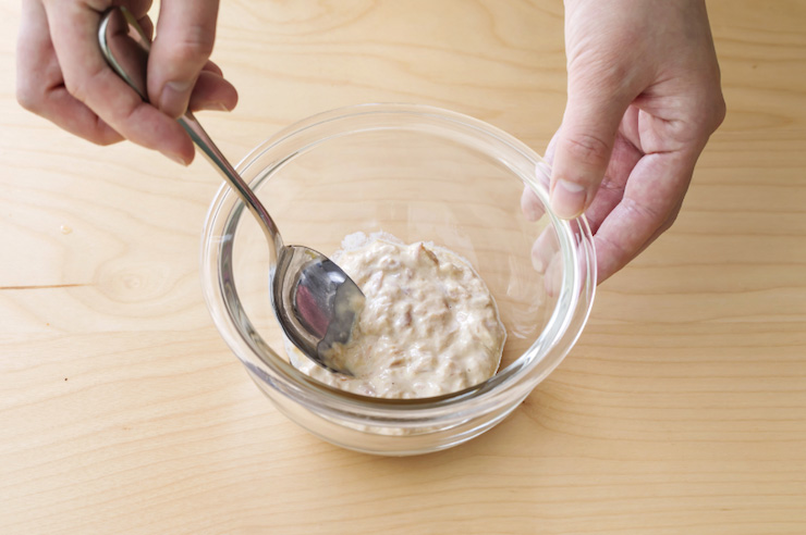水分が多いと他の具材とまとまらないので、ざるでこして水分をきります。
